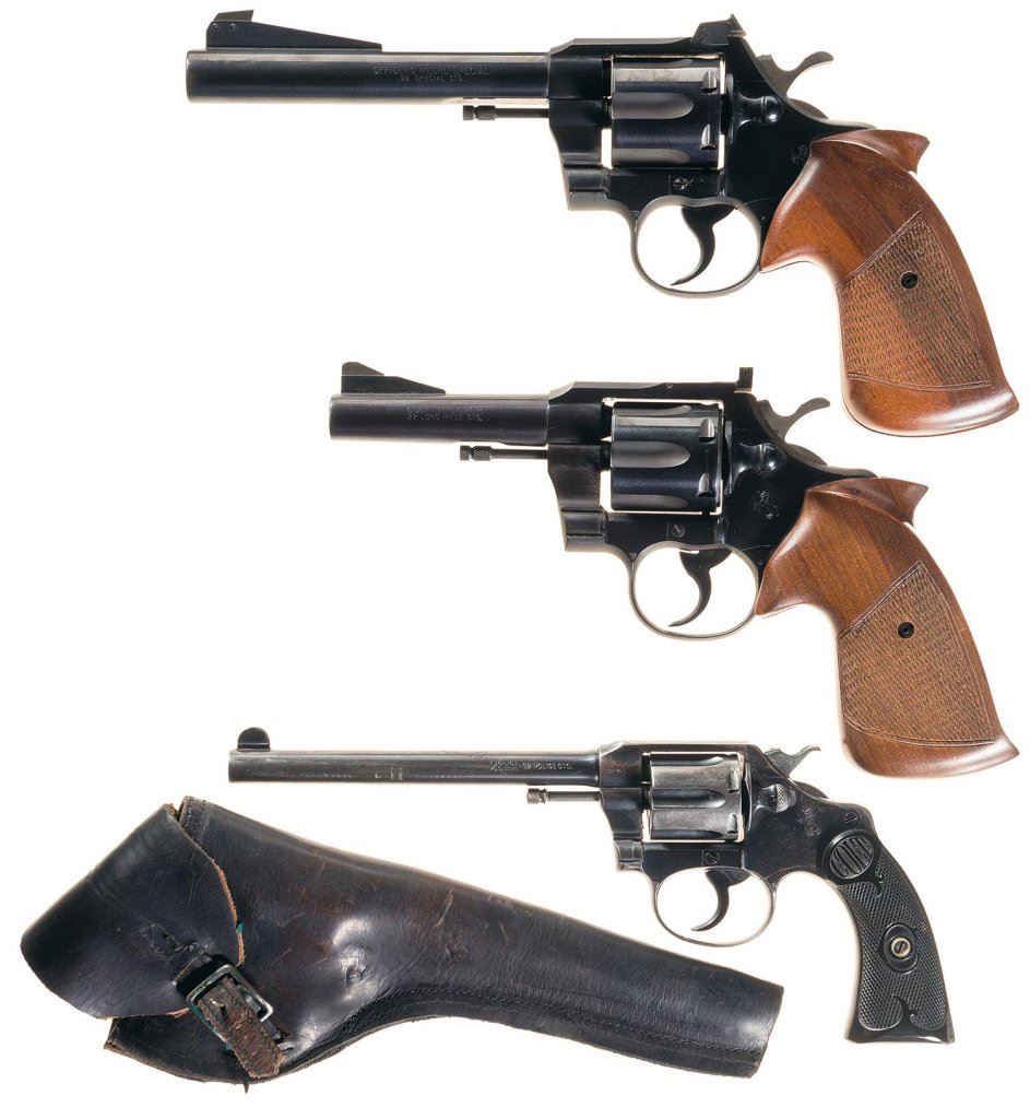 Three Colt Double Action Revolvers -A) Colt Officer's Model Special Revolver with Target Grips