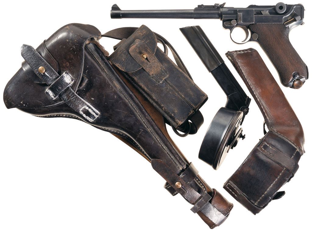DWM 1917 Dated Model 1913 Artillery Luger Semi-Automatic Pistol with Stock, Holster Rig and Drum Magazine