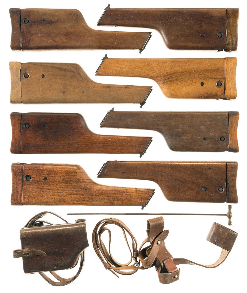 Lot 4332 Eight Mauser Wooden Stock Holsters with Two Leather Holders and a Cleaning Rod