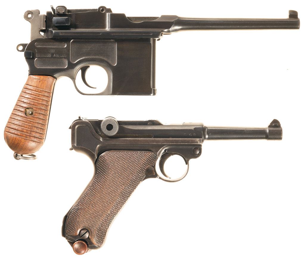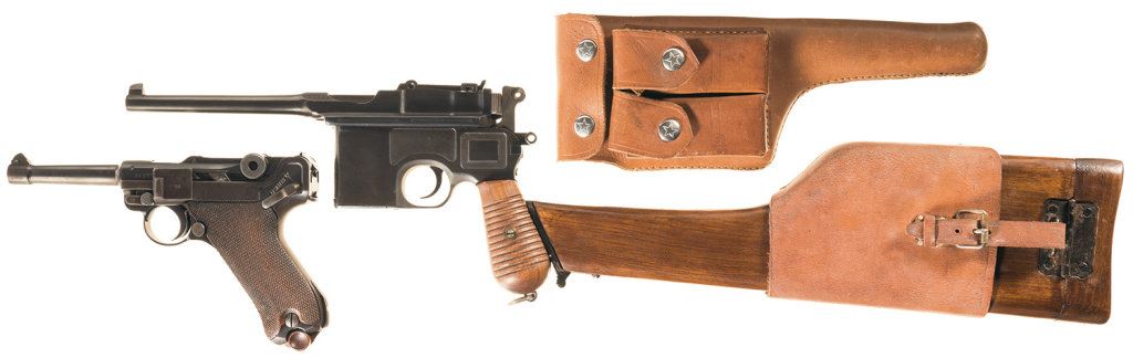 Two Semi-Automatic Pistols -A) Mauser Broomhandle Pistol with Holster, Holster Stock and Accessories