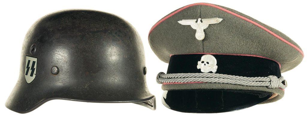 SS Style Helmet and Waffen SS Officer's Style Visor Cap