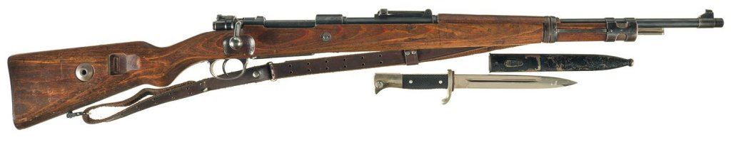Lot 2646 Feinmechanische Werke Model 98K Mauser Bolt Action Rifle with Dress Bayonet and Sword