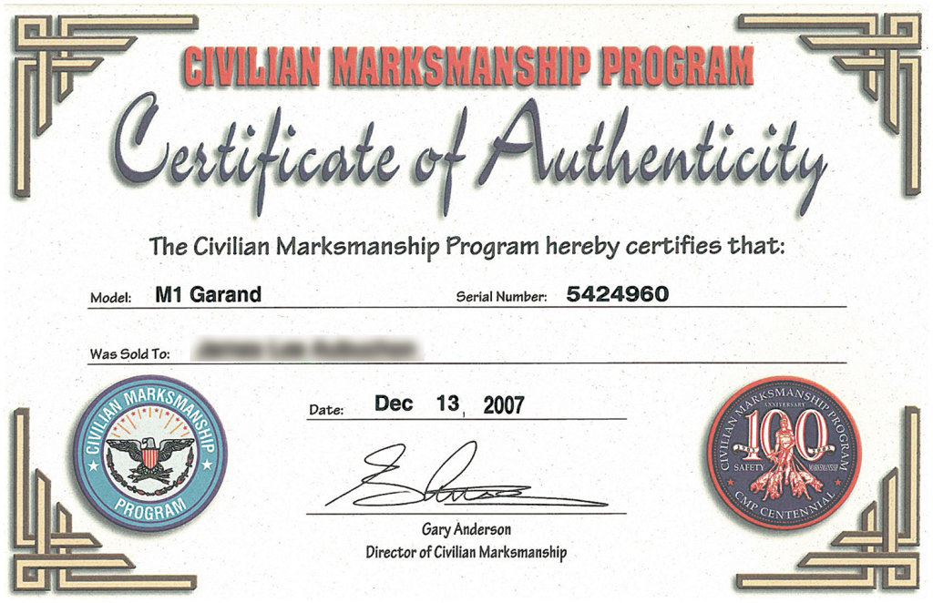 The barrel is marked "E/flaming bomb/8-18". The left side of the stock is marked with a boxed Augusta Arsenal rebuild stamp.