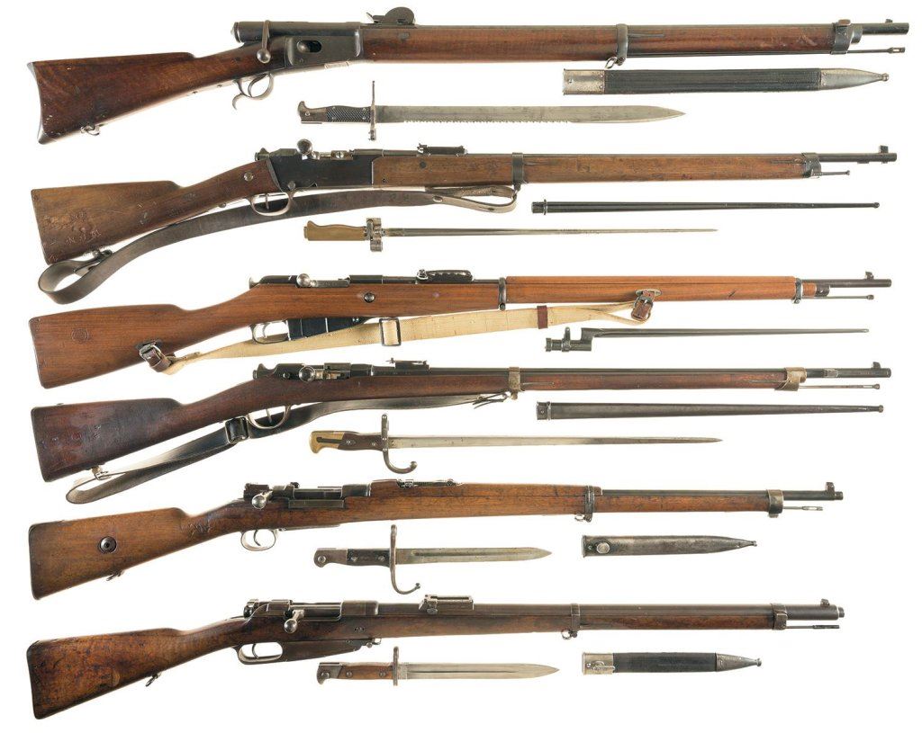 Six Bolt Action European Military Rifles with Bayonets -A) Swiss Vetterli Model 1881 Rifle