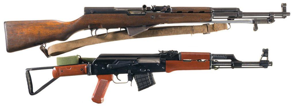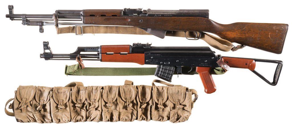 Two Semi-Automatic Longarms -A) Chinese Type 56 SKS Carbine with Bayonet and Ammunition Pouches