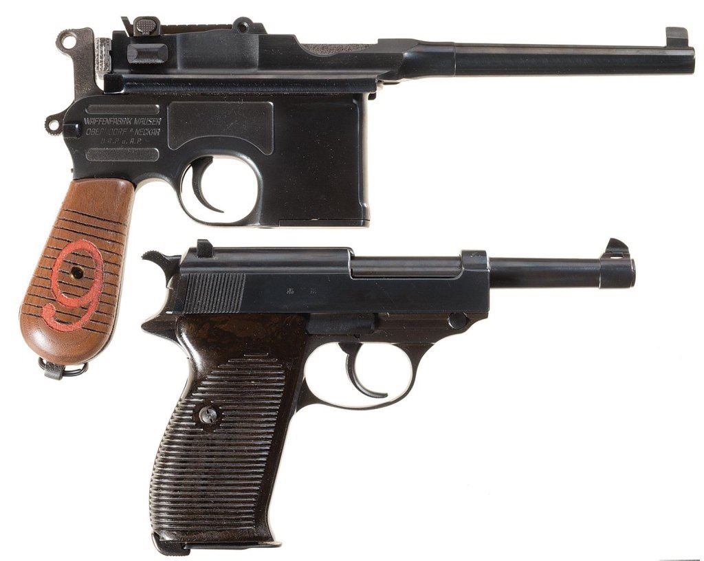 Two German Semi-Automatic Pistols -A) Mauser Broomhandle Pistol with "Red Nine" Grips