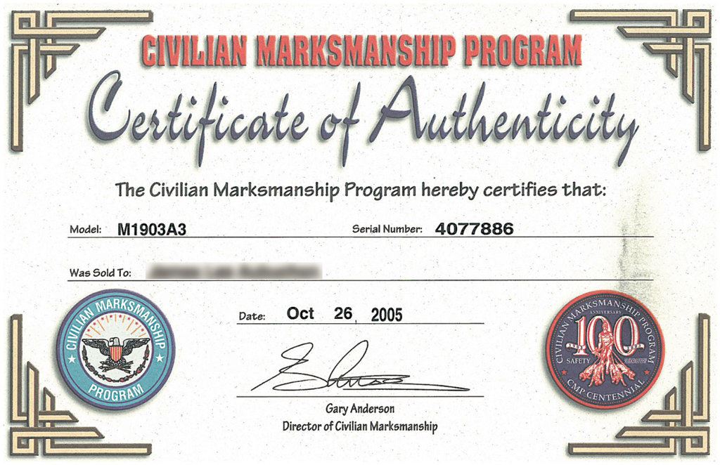 B) U.S. Remington Arms Model 1903A3 Bolt Action Rifle