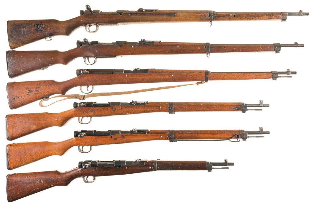Four Japanese Arisaka Bolt Action Long Guns and Two Training Weapons -A) Chinese Marked Type 30 Rifle
