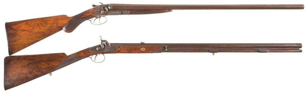 Lot 2777 Two Engraved English Long Guns -A) N. C. Greenough Double Barrel Hammer Shotgun