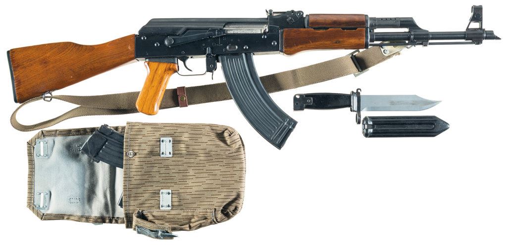 With a bayonet, two extra magazines and a belt pouch.