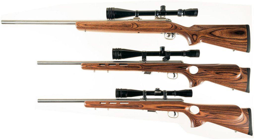 Three Savage Bolt Action Rifles with Scopes -A) Savage Model 12 BVSS Single Shot Rifle