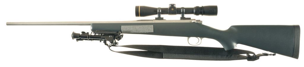 Fitted with a Leupold VX-III 2.8-8x36mm scope, adjustable bipod, and nylon sling. The box is numbered to the gun and includes a lock and papers.