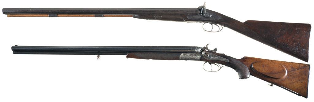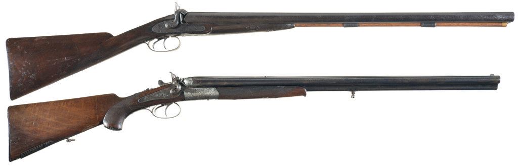 Lot 4744 Two Engraved Long Guns -A) J. E. Evans Double Barrel Percussion Shotgun
