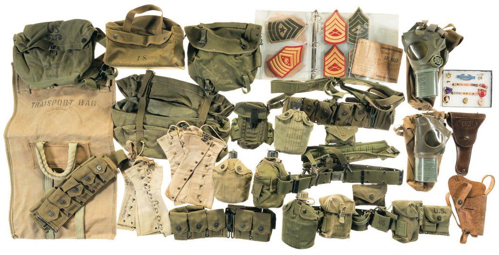 Large Grouping of U.S. Military Canvas Gear, Medals and Patches