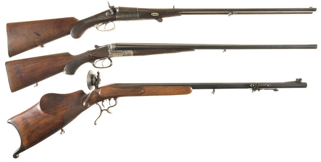 Manufactured in the late 19th century. The 16 ga barrel has a cylinder choke and 2 1/2 inch chamber. The right barrel is just over 9 mm. 13 5/8" LOP.