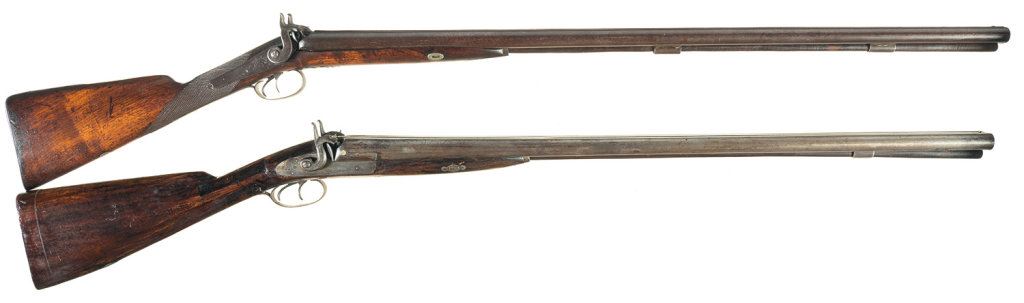 Lot 4772 Two Engraved Double Barrel Percussion Shotguns with Banded Breeches-A) H.E. Dimick Shotgun