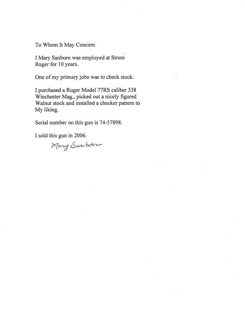 The box is numbered to the gun and includes a manual. Includes a letter from the Ruger employee that checkered the stock.