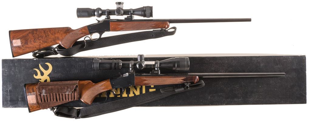 Lot 4793 Two Browning Single Shot Falling Block Rifles with Scopes -A) Browning Model 1885 Low Wall Rifle