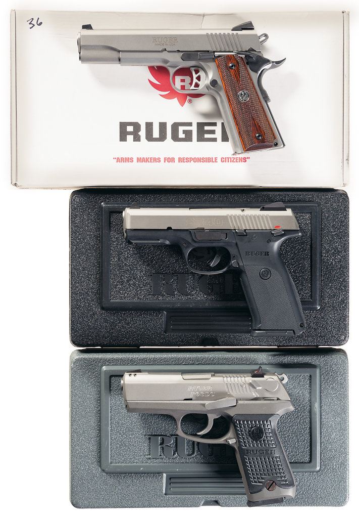 Three Ruger Semi-Automatic Pistols with Cases -A) Ruger SR-1911 Pistol with Box