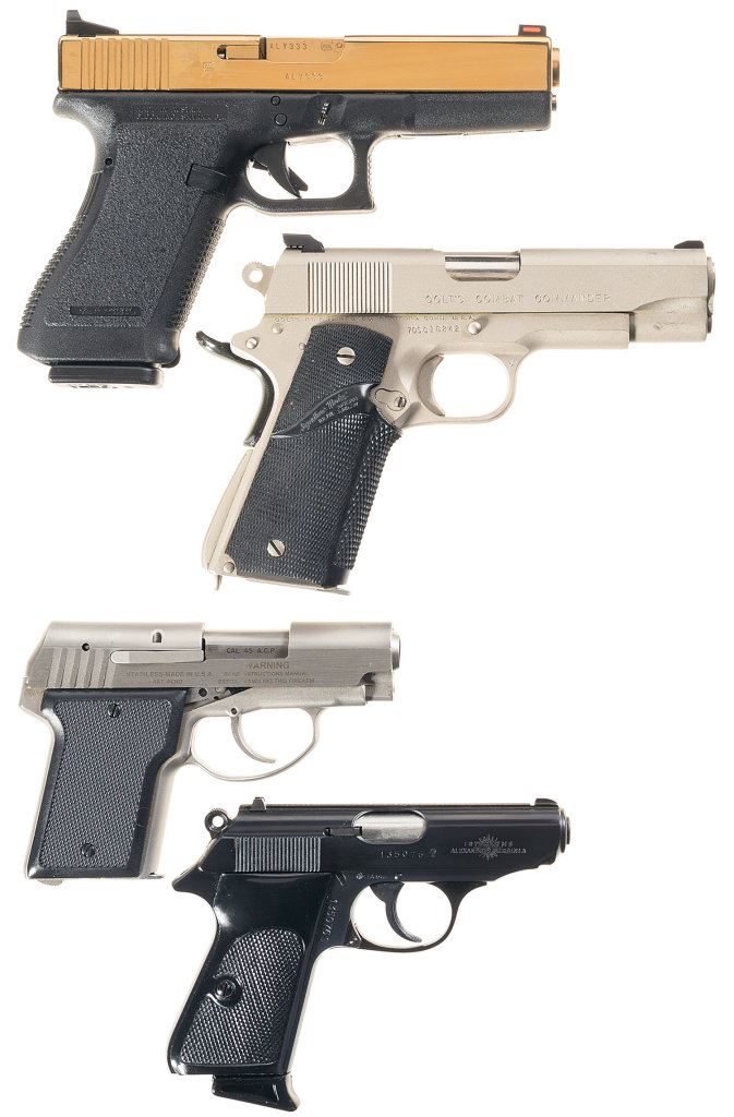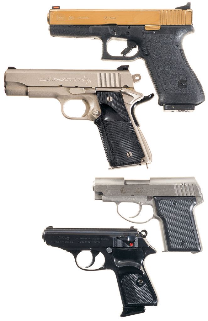Four Semi-Automatic Pistols -A) Inscribed and Gold Plated Glock Model 21 Pistol