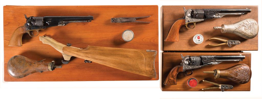 Lot 4983 Three Cased Replica Arms Percussion Revolvers with Accessories -A) Shoulder Stocked Replica Arms Mod