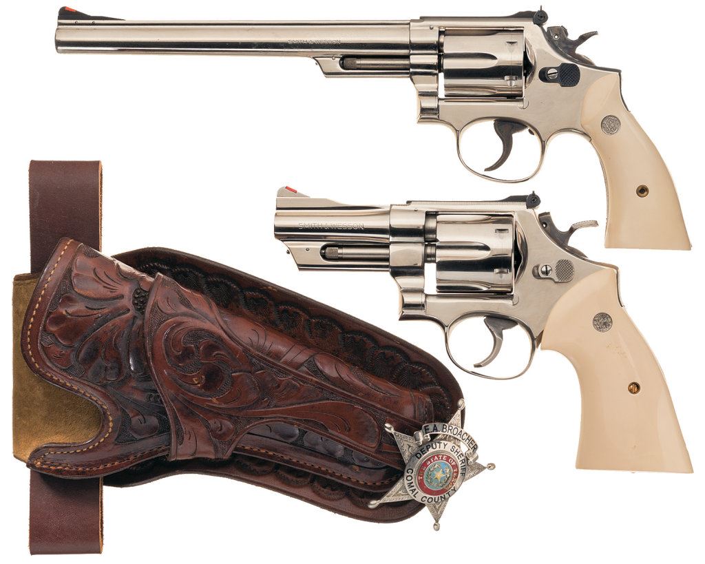 B) S&W Model 27-2 Revolver with Holster and Badge