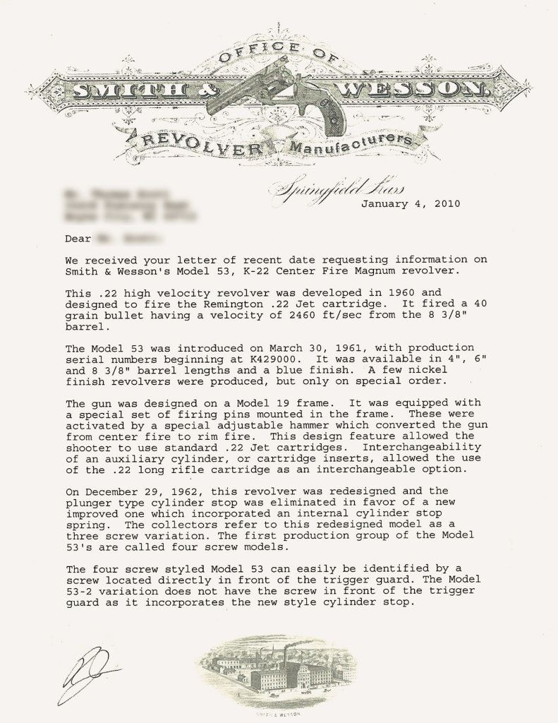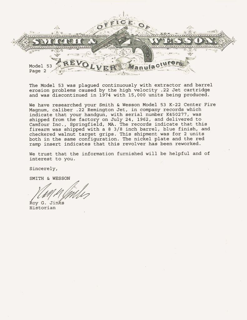 Two Smith & Wesson Double Action Revolvers -A) S&W Model 53 Revolver with Factory Letter and Cylinder Inserts