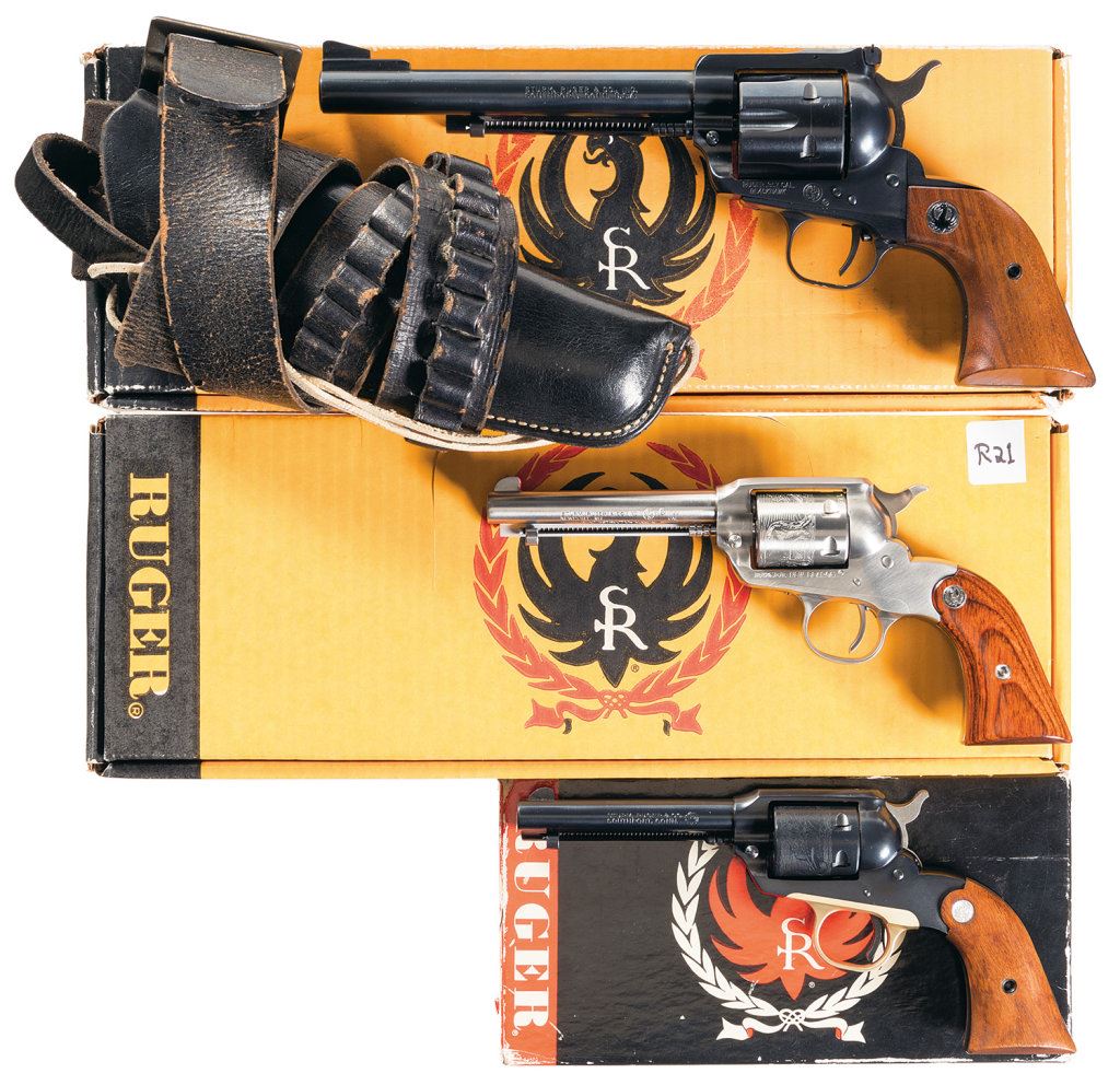 Three Ruger Single Action Revolvers with Boxes -A) Ruger Old Model Blackhawk Revolver