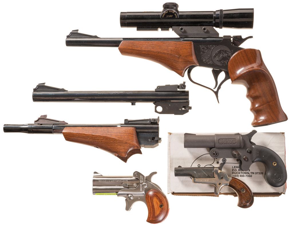 Four Single Pistols -A) Thompson Center Arms Contender Single Shot Pistol with Scope and Extra Barrels