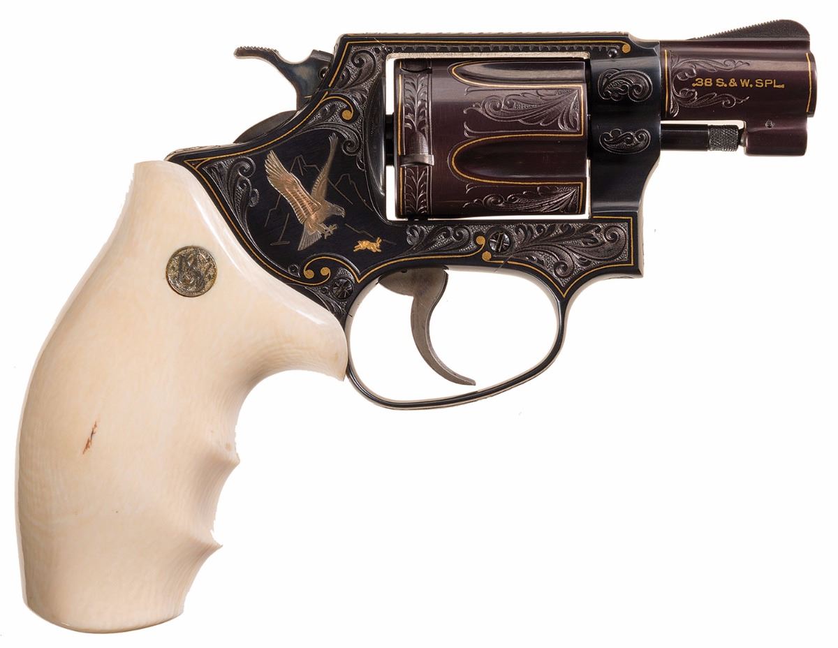 Lot 3188 Master Engraved Gino Cargnell Signed and Gold Inlaid Smith & Wesson Model 36 Double Action Revolver