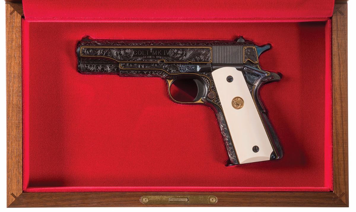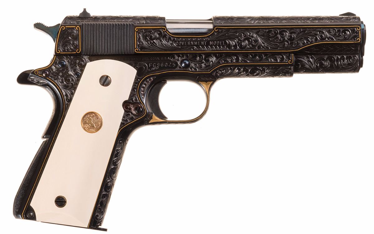 Lot 3191 Colt Factory Master Engraver Ken Hurst Signed Engraved and Gold Inlaid Colt MK IV Series 80 Governme