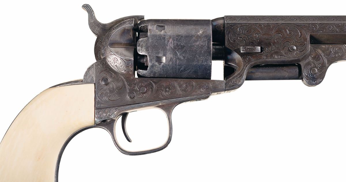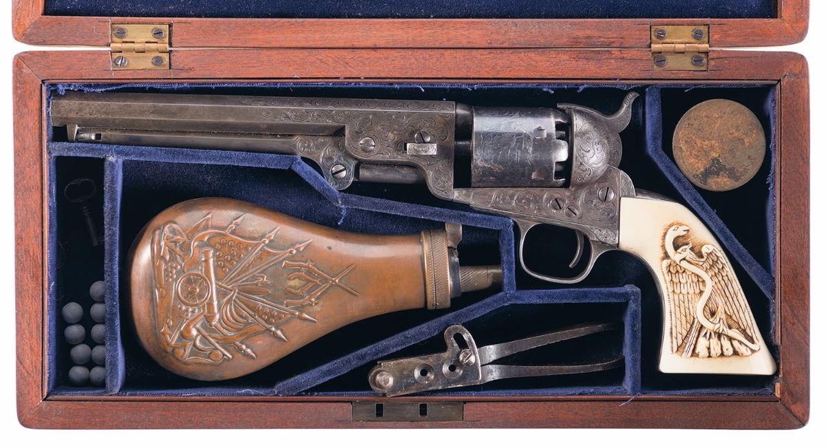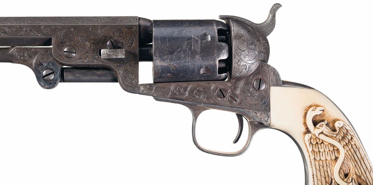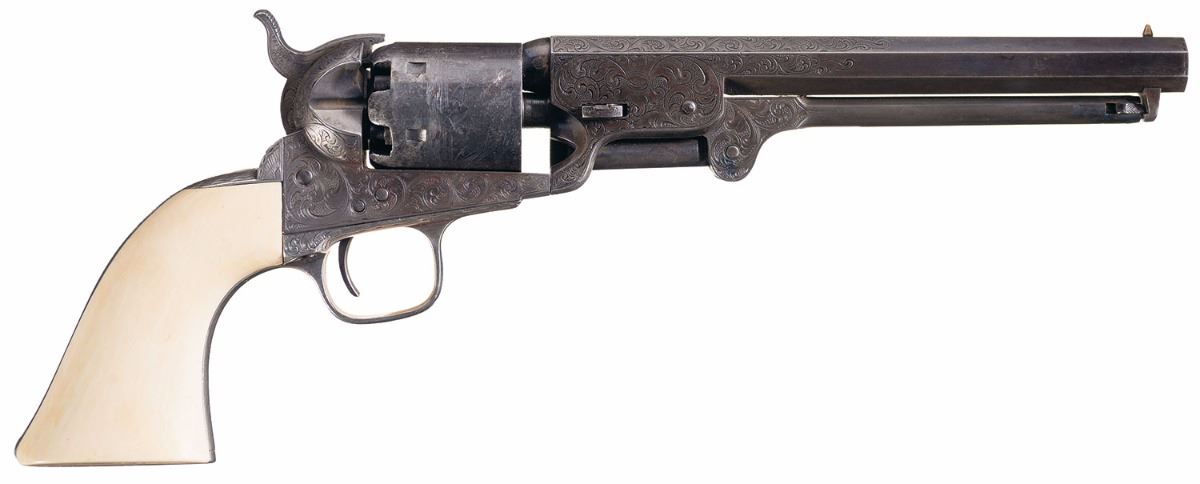 Lot 3206 Attractive Engraved Colt Model 1851 Navy Revolver with Mexican Eagle Carved Grip