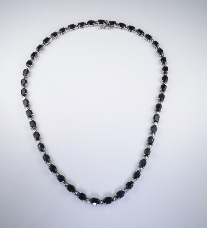 Featuring 46 oval cut blue Sapphires weighing approx. 30.00-35.00 carats set in heavy custom made silver setting.