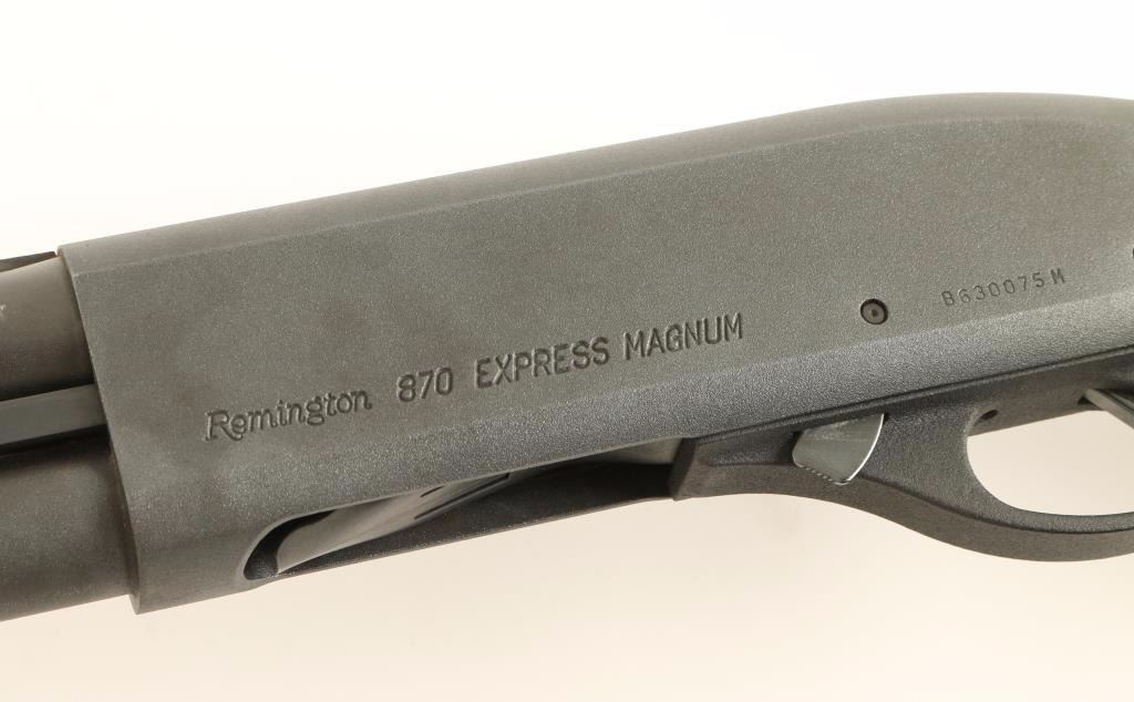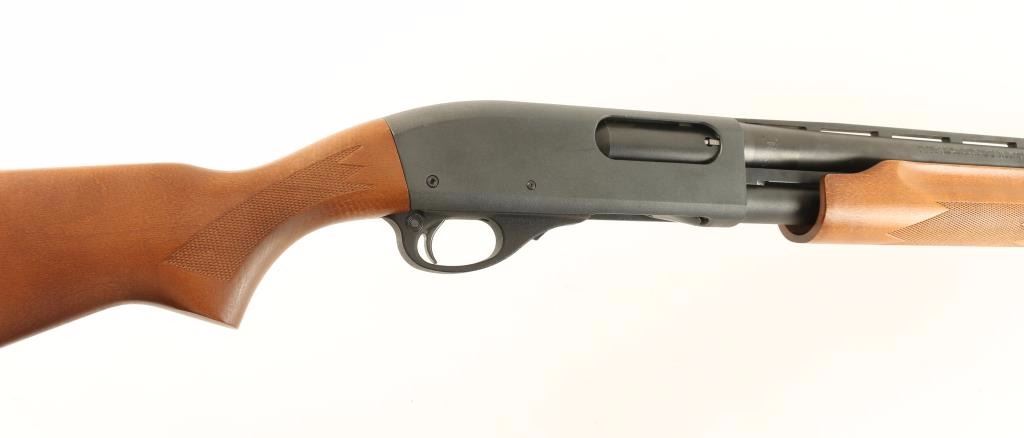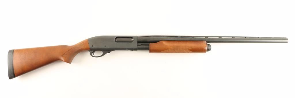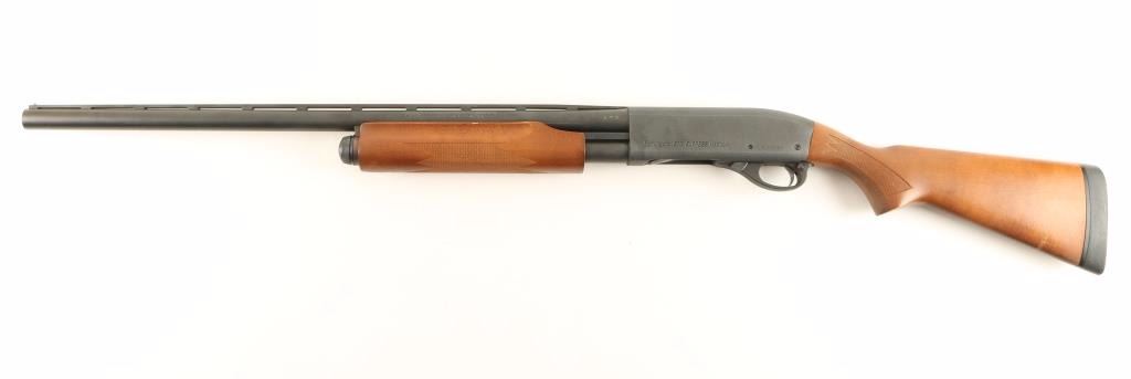 Tube-fed slide action repeating shotgun chambered for 2 3/4" & 3" 12 gauge shells. Features a metallic grey finish, 25.5" vent rib barrel with removable choke, silver bead front sight, 1/2 tube magazine, push button safety, beveled trigger, checkered wood slide handle and pistol grip shoulder stock with recoil pad. Shotgun shows a few light rubs on receiver and discoloration on magazine lug with no major wear. Action is smooth, bore is excellent and stocks are fine. Condition is excellent. ***Modern Firearm***