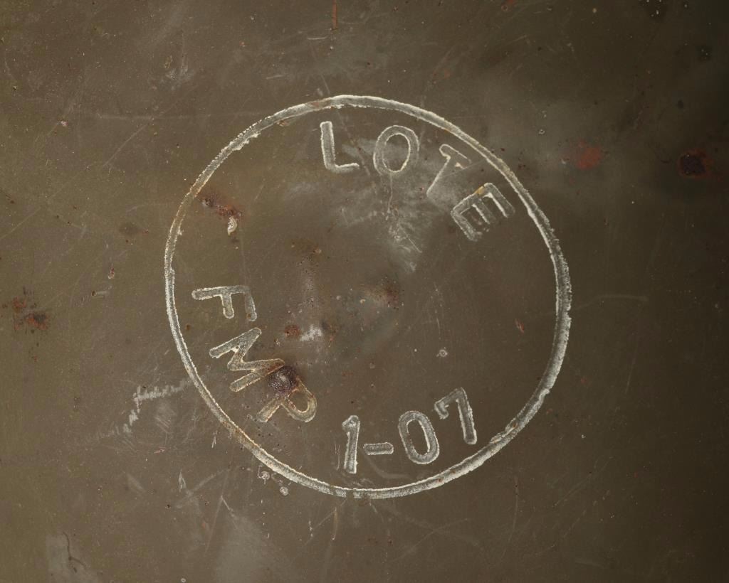All military green with straps and marked LOTE FMR 1-04, 1-06,1-07, and 1-11. Show use, age and some rust.