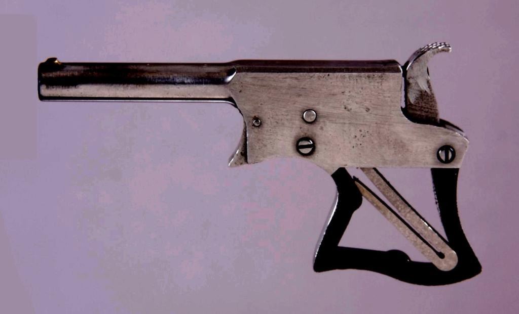A single shot pistol chambered in .22 caliber. Barrel is 3 1/4" long. This a small pistol made to fit in a vest pocket. No markings on barrel. Working action. No grips Condition: In overall good condition minus grips. ***Antique Firearm***