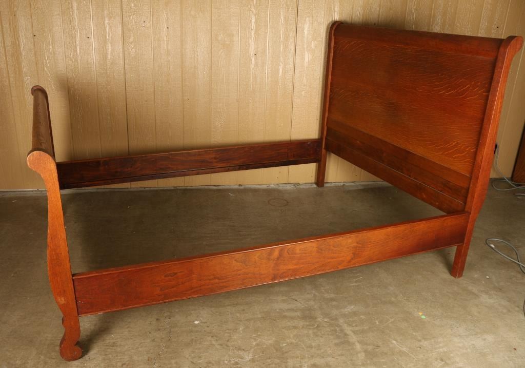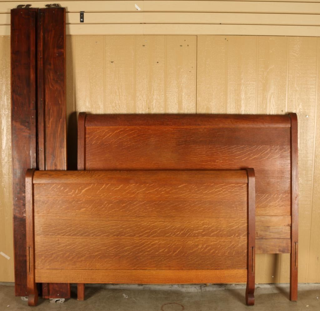 Early 1900's Queen size, quarter sawn oak with minor dings and scratches. Shows very nice wood grain. Perfect for vintage decor!