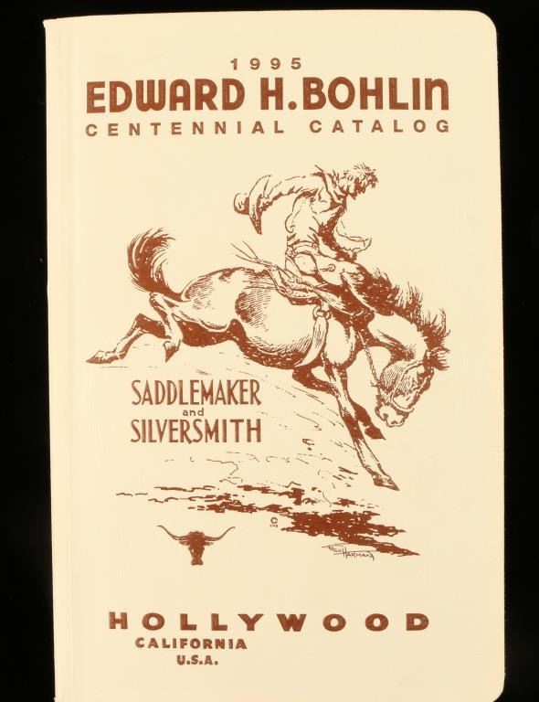 Contains numerous photos of spurs, saddles, buckles, etc, and history of the famed Saddle Maker and Silver Smith. Excellent condition.