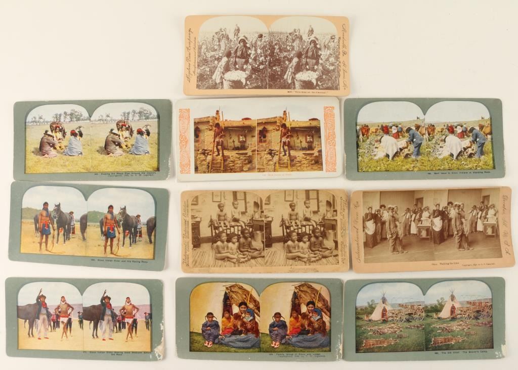 10 cards depicting Native American scenes, some with descriptions on back of card from assorted studios-Underwood & Underwood Publishers, Keystone View Company, International View Company, and World Series.