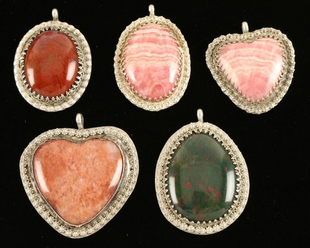 Lot 505 Lot of 6 Stone Pendants & 2 Rings