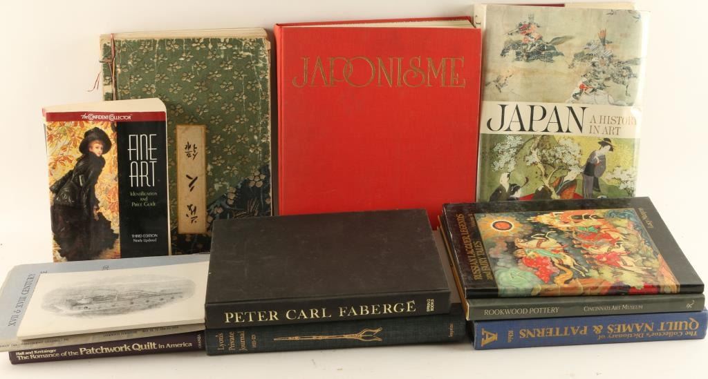 Including; "Japan A History in Art" by Bradley Smith, "Japonisme" by Siegfried Wichmann, "Russian Lacquer, Legends, and Fairy Tales" by Lucy Maxym, "The Romance of the Patchwork Quilt in America" by Carrie A. Hall and Rose G. Kretsinger, "Rookwood Pottery" by Anita J. Ellis, "Peter Carl Faberge" by Henry Charles Bainbridge and more.