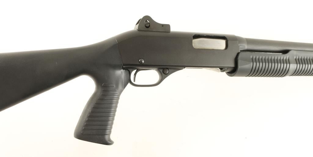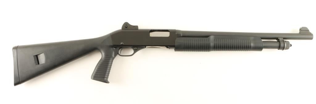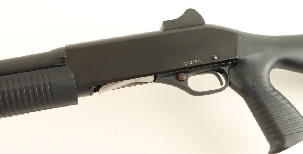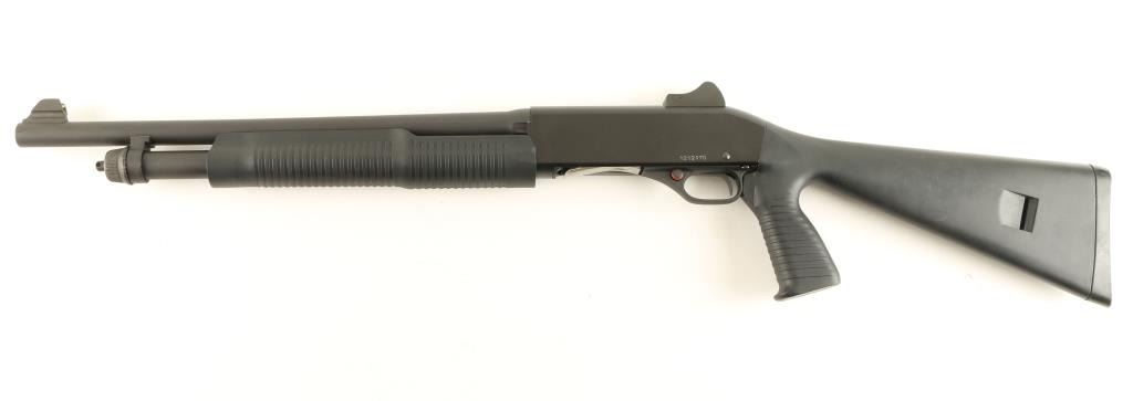 Chinese make slide action repeating shotgun chambered for 2 3/4" & 3" 12 gauge shells, imported by Savage Arms. Features a matte black finish, 18.5" barrel, winged fiber optic front sight, adjustable ghost ring rear sight, 3/4" tube magazine, push button safety, smooth trigger, grooved black synthetic slide handle and shoulder stock with full pistol grip. Shotgun shows little to no wear. Action is smooth, bore is pristine and stocks are fine. Condition is excellent. ***Modern Firearm***