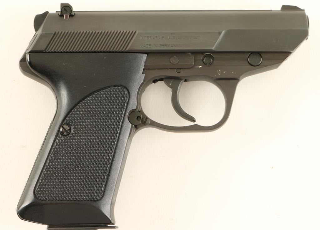 Desirable German made compact semi-automatic pistol chambered in 9mm Luger, imported by Interarms. Features a matte blued finish, 3" barrel, blade front sight, adjustable rear sight, serrated slide, thumb decocker/slide release, serrated trigger & front strap, bobber hammer, push button safety, 8 round magazine, and checkered black plastic wrap around grips. Includes original factory hard case with documents and extra magazine. Pistol shows very little wear with only a single small blemish on the right side of the frame observed. Action is crisp, bore is pristine and grips are fine. Condition is excellent in case. ***Modern Firearm***