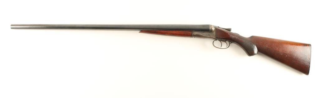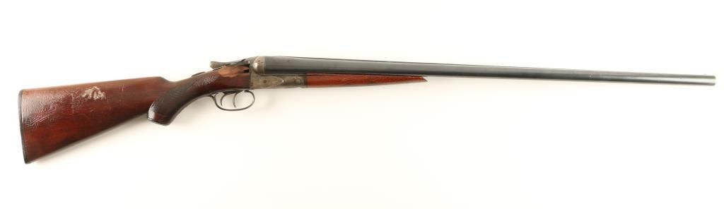 Side by side double barrel boxlock shotgun chambered for 2 3/4" 12 gauge shells. Features blued 30" barrels with concave rib, silver bead front sight, extractors, case hardened receiver with light border engraving, double triggers, checkered top lever, sliding tang safety, checkered wood forend and pistol grip shoulder stock with serrated black plastic buttplate. Barrels retain approximately 80% of their blued finish with scattered light surface rust forming, receiver had case colors present mixed with scattered light surface rust and wood stocks have been heavily re-varnished with some varnish apparent on the receiver. Action is sound, bores are good and shoulder stock has a large chip at the wrist on the right side. Condition is fair to good. ***Modern Firearm***