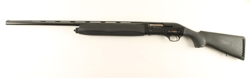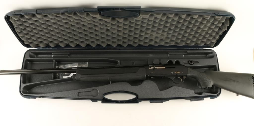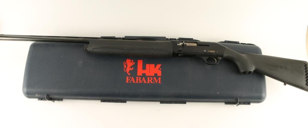 Left handed Italian made semi-automatic shotgun chambered for 3" shells, marketed by Heckler & Koch. Features a blued finish, 28" vent ribbed barrel, HiVis front sight, polished bolt, checkered trigger, push button safety, 1/2 tube magazine, swivel studs, black rubber coated stocks and rubber recoil pad. Includes factory hard case with stock spacers, sling swivels, additional chokes, tool and documents. Shotgun shows some use with light handling marks on metal surfaces and blemishes on stock. Action is smooth, bore is excellent and stock is good. Condition is near excellent in case. ***Modern Firearm***