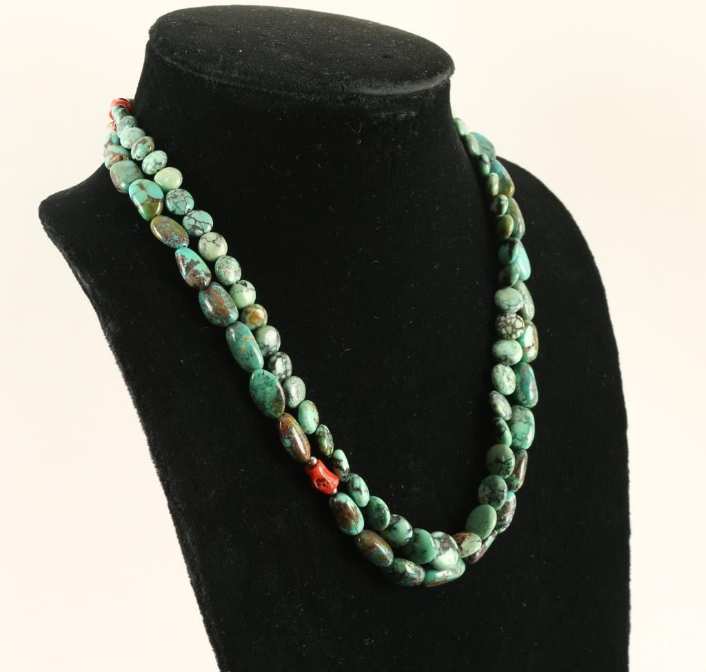 Lot 993 2 Single Strand Chinese Turquoise Necklaces
