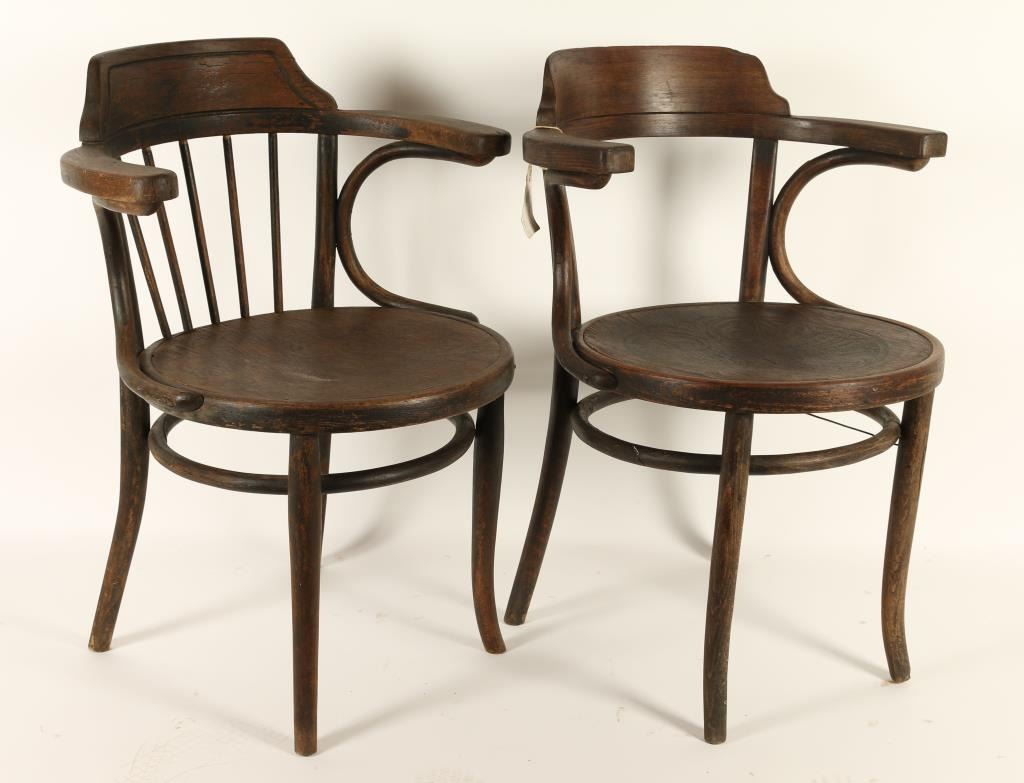 English bentwood armchairs with round seat with floral motif. Circa 1920's.