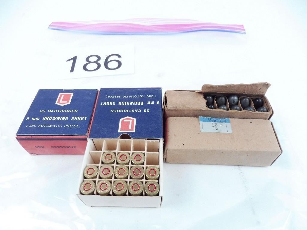 Lot 186 32 rounds 9mm German military 1943, 50 rounds 9mm Browning short