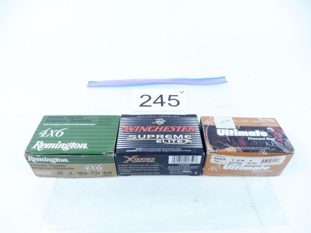 Lot 245 30 rounds 12 gauge turkey loads. 10 3" #4, 10 rds #4+6, 10 2 3/4 #4