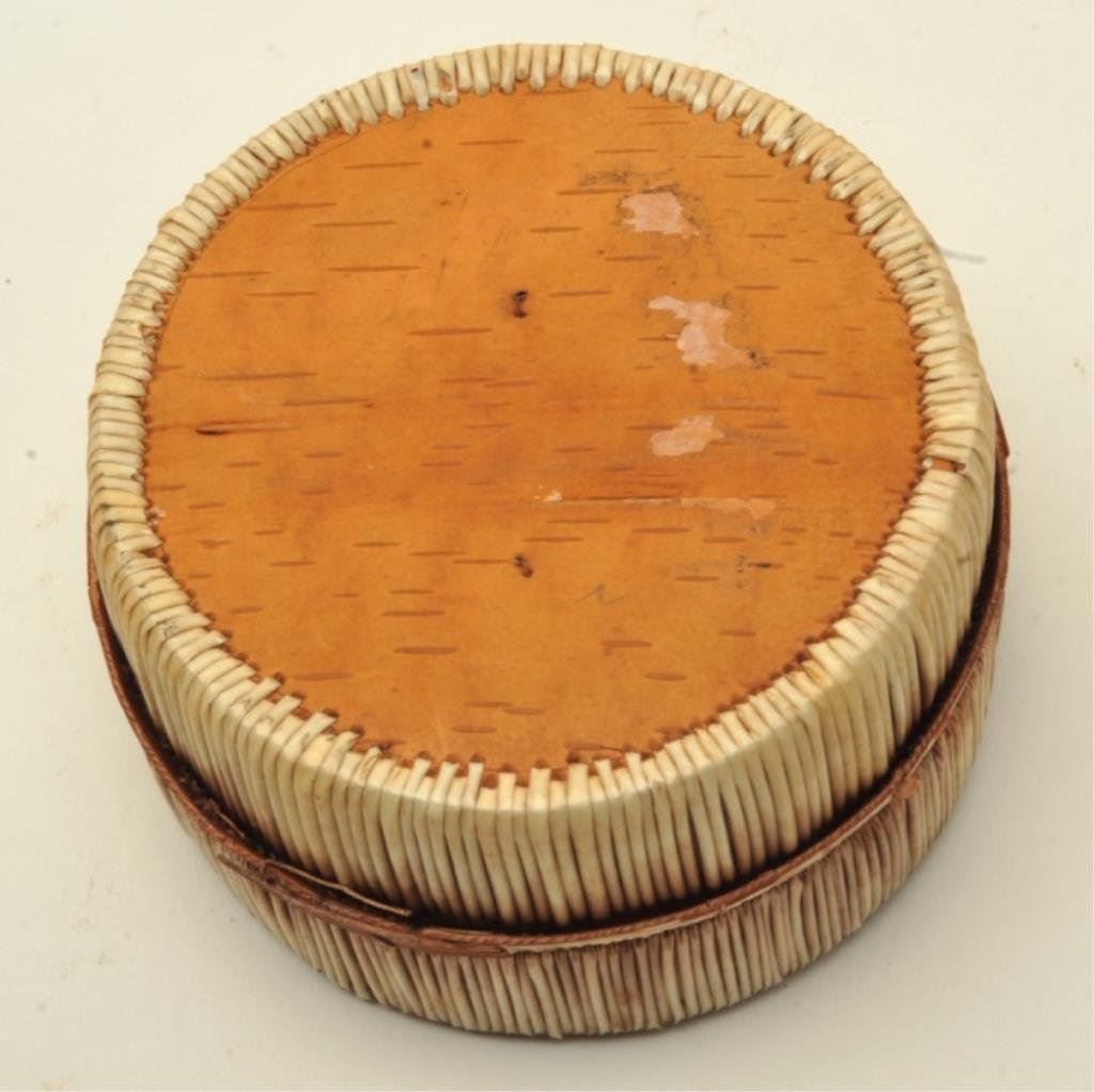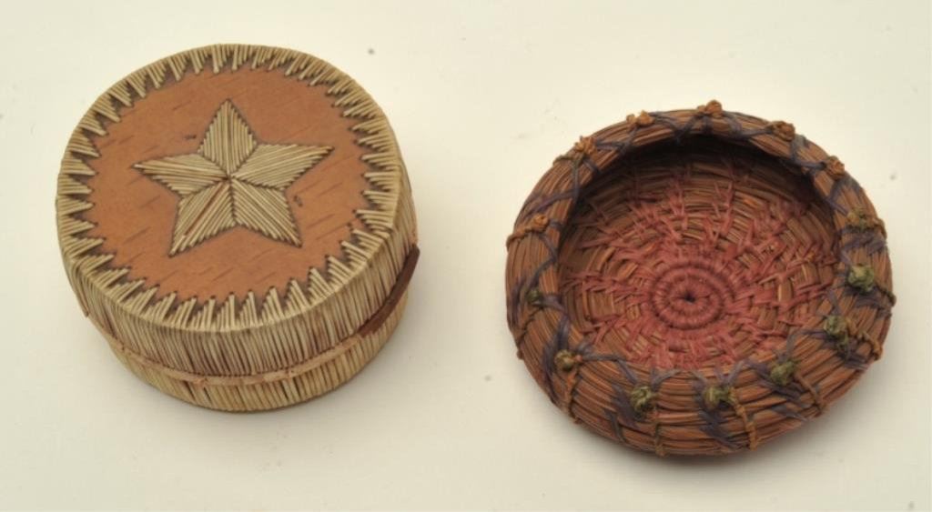 approximately 4” in diameter and in very good condition; one a two-piece basket with cover, approximately 4” in diameter and 2” in height showing some minor damage to the rim of the cover. Est.: $50-$100.